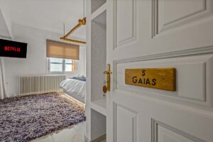 Blue Mountain Guesthouse apartment «Gaias» can accommodate 6 guests. The apartment is a duplex located on the second floor of the guesthouse with a studio loft.