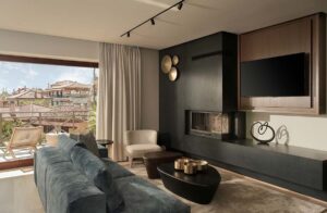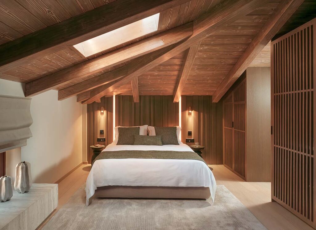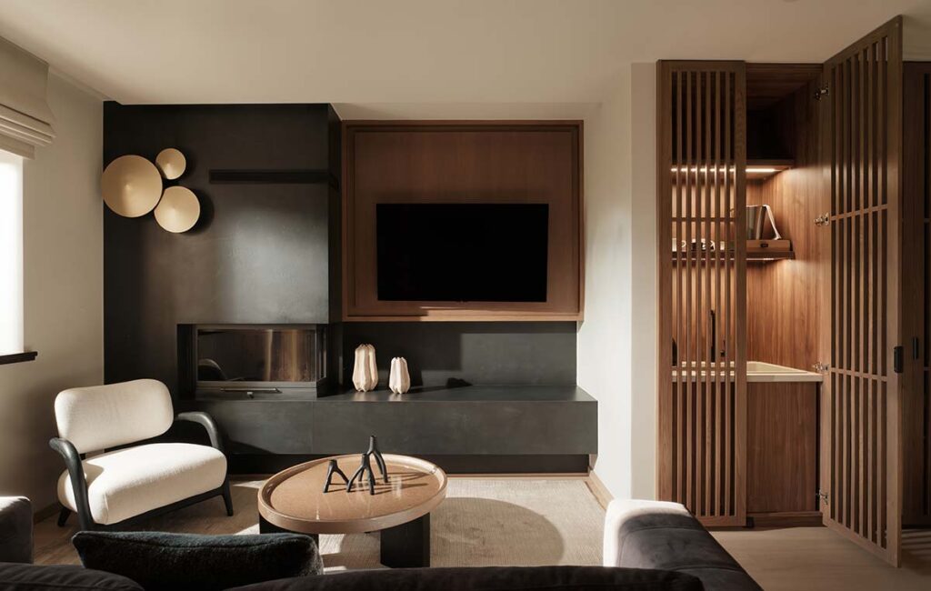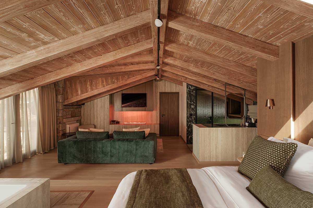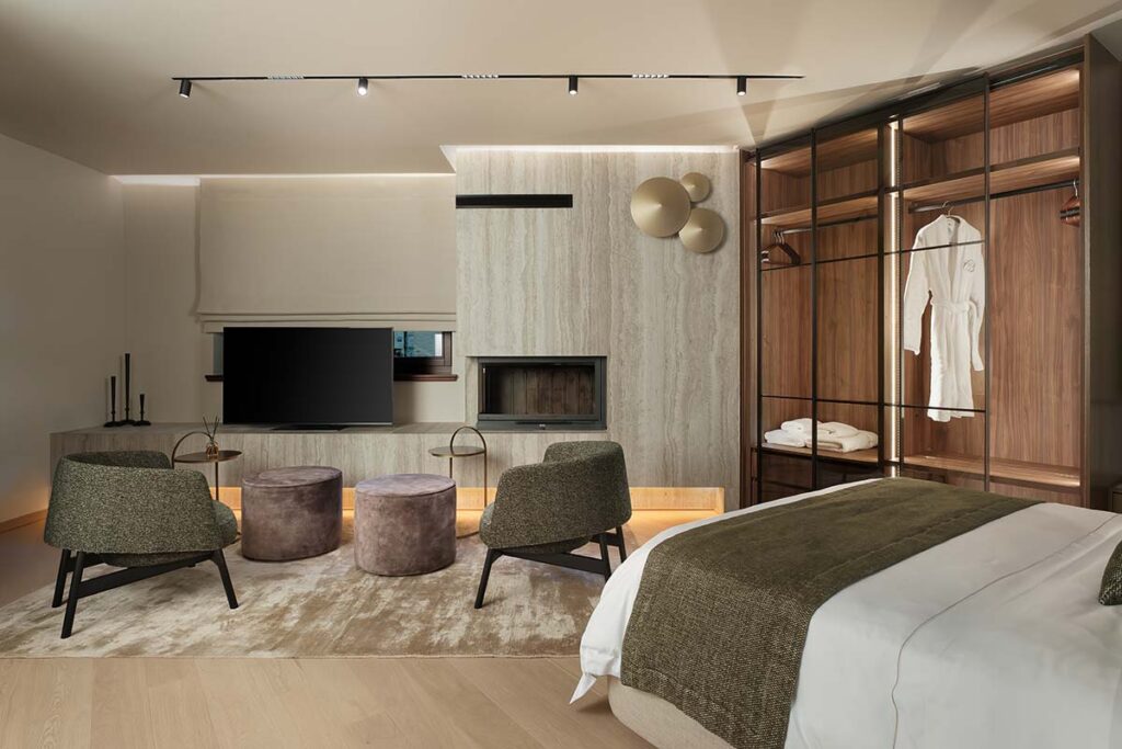 The building, with its distinctive architecture that combines natural materials such as stone and wood, welcomes guests into bright, exceptionally elegant interiors that exude a sense of high luxury and comfort.
