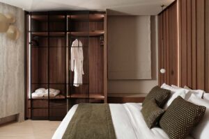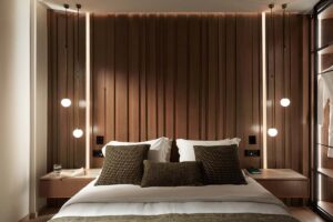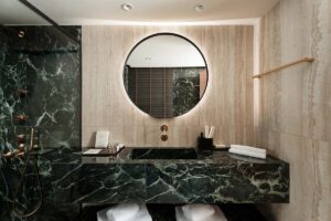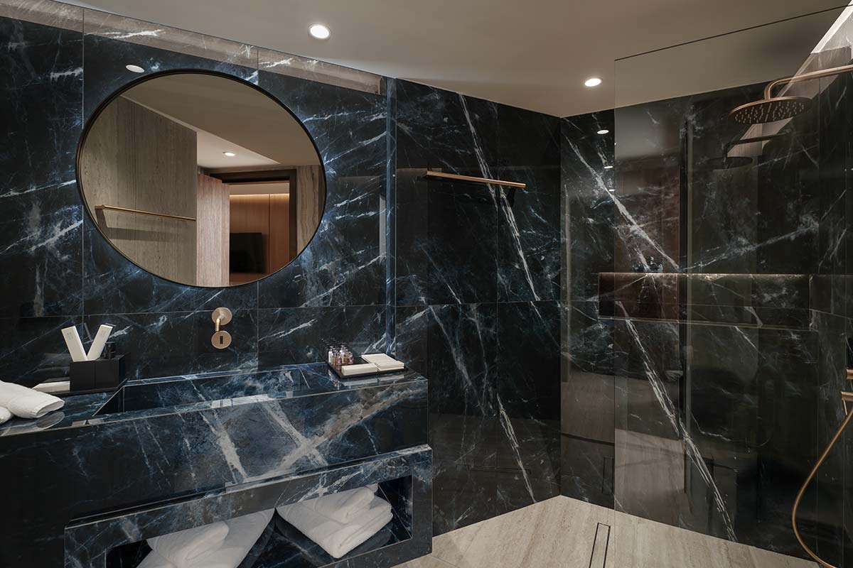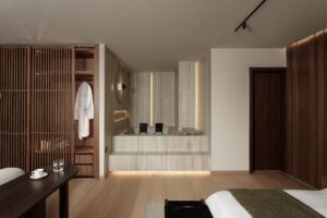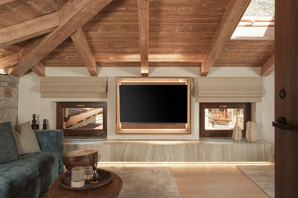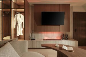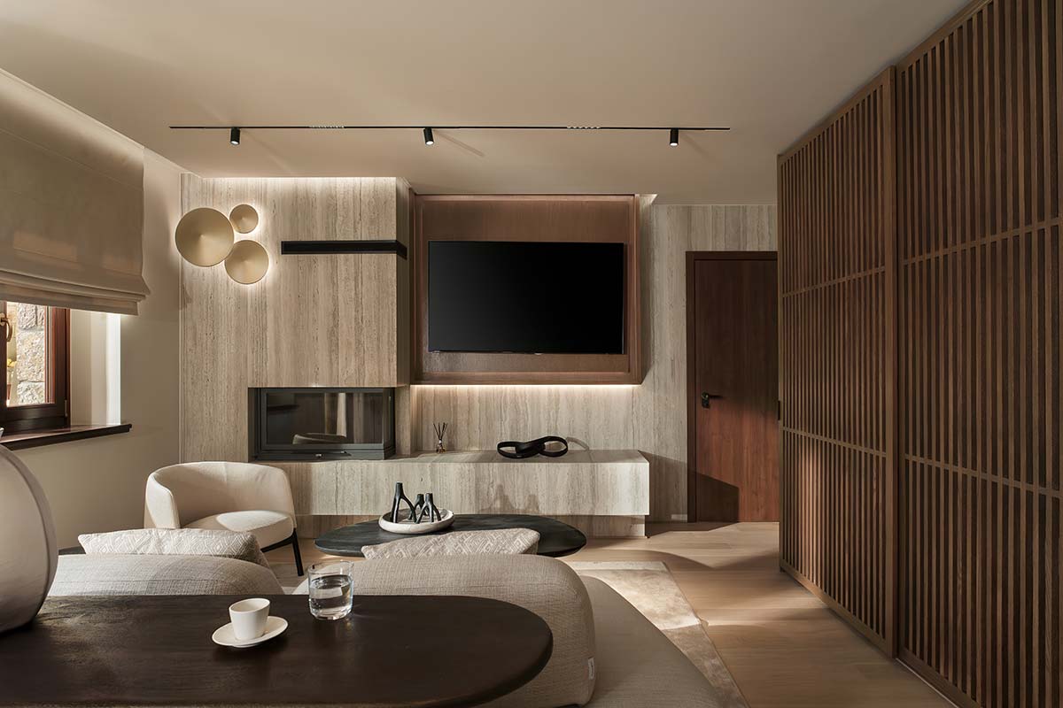 The building, with its distinctive architecture that combines natural materials such as stone and wood, welcomes guests into bright, exceptionally elegant interiors that exude a sense of high luxury and comfort.