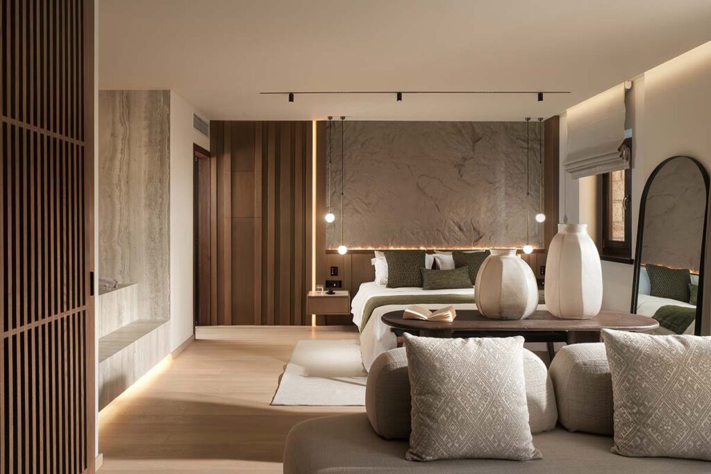 The Imperial Suite offers a luxurious stay in a spacious, open-plan area with a warm and relaxing ambiance. With a design that harmoniously combines natural materials like stone and wood, this suite is ideal for two guests seeking tranquility and privacy.