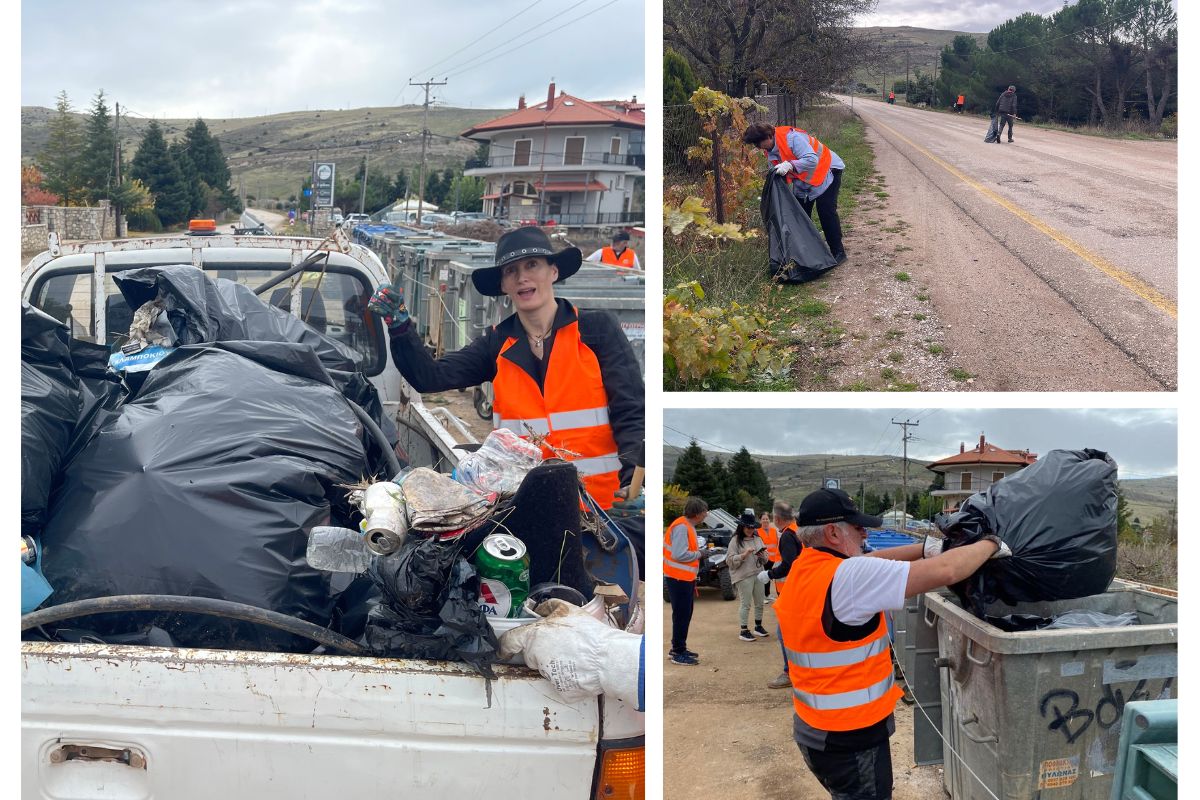 Δράση καθαρισμού του κεντρικού δρόμου στο Λιβάδι Αράχωβας από μέλη της ομάδας.