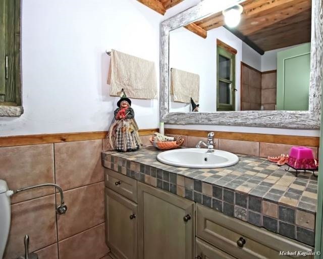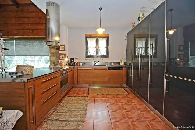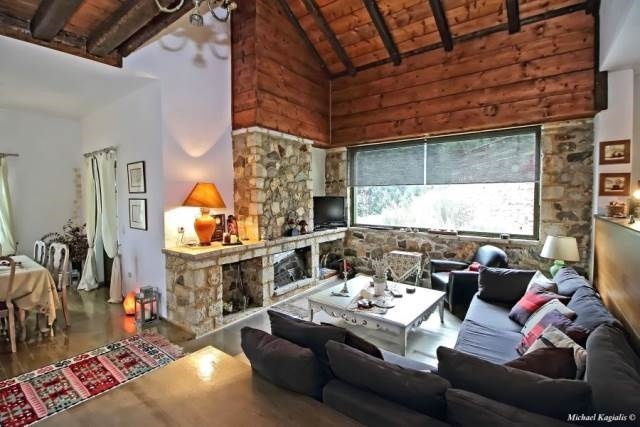 Η κατοικία είναι πλήρως επιπλωμένη με αρχοντικό στυλ, όπου κυριαρχούν οι πέτρινες επιφάνειες, οι καμάρες και το φυσικό ξύλο. Στις premium παροχές περιλαμβάνονται σάουνα, τζάκι, θερμοπομποί, εσωτερική σκάλα και πλήρως εξοπλισμένη κουζίνα. Ο εξωτερικός χώρος είναι ιδανικά διαμορφωμένος με κήπο και ψηλά έλατα, προσφέροντας πανοραμική θέα στο μαγευτικό ορεινό τοπίο.