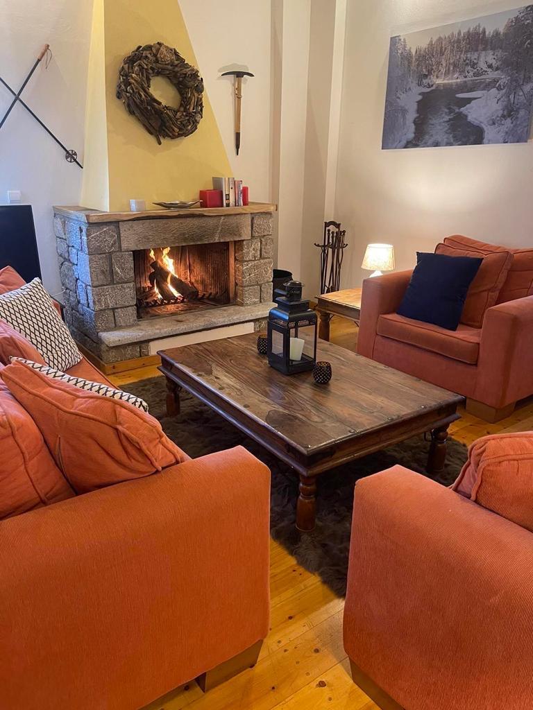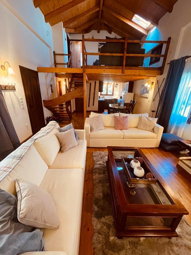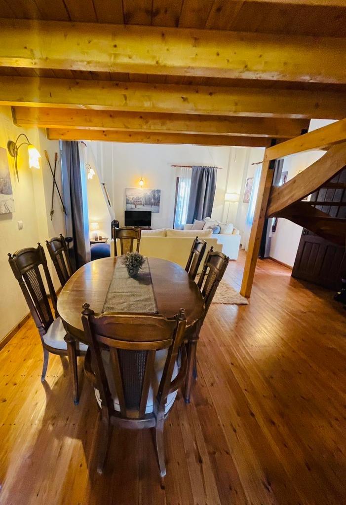 Σαλόνι με τζάκι, τραπεζαρία, πλήρως εξοπλισμένη κουζίνα