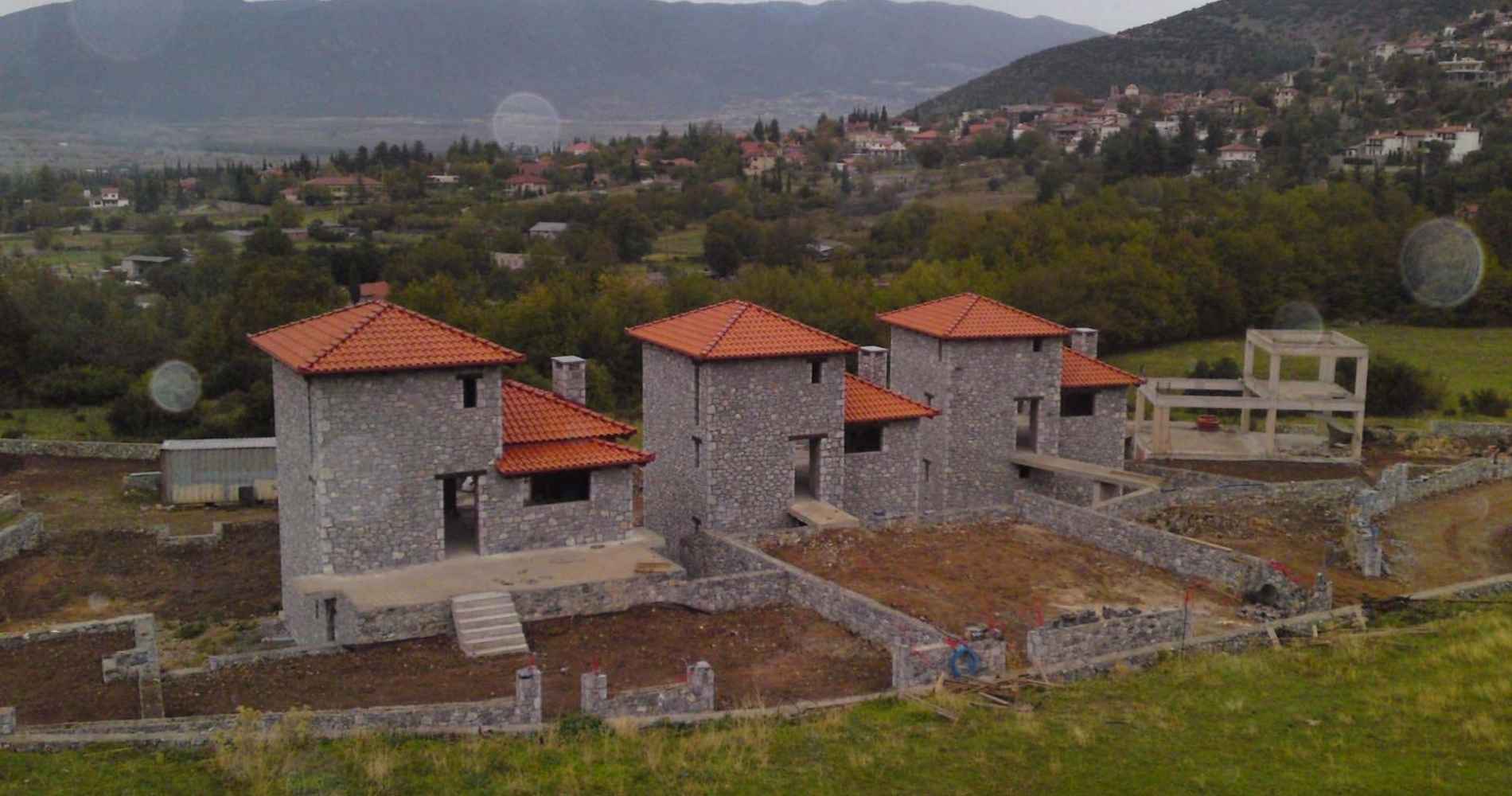 Τρεις μεζονέτες, σε στάδιο ημιτελούς κατασκευής, εμβαδού από 120 έως 150 τ.μ., χτισμένες σε οικόπεδα 800–1.000 τ.μ.