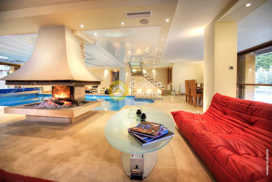 Πωλείται πολυτελής έπαυλη 578τ.μ., στο Λιβάδι Αράχωβας, θέση Μανώλη Βρύση. Βρίσκεται σε οικόπεδο 1.000τ.μ. και είναι κατασκευασμένη από πέτρα και ξύλο. Αποτελείται από 3 επίπεδα και έχει συνολικά 5 Υ/Δ, 4 μπάνια, σαλόνι, τραπεζαρία, κουζίνα, καθώς και ένα αυτόνομο ημιτελές διαμέρισμα. Διαθέτει εσωτερική θερμαινόμενη πισίνα, μεγάλο τζάκι και αυτόνομη θέρμανση